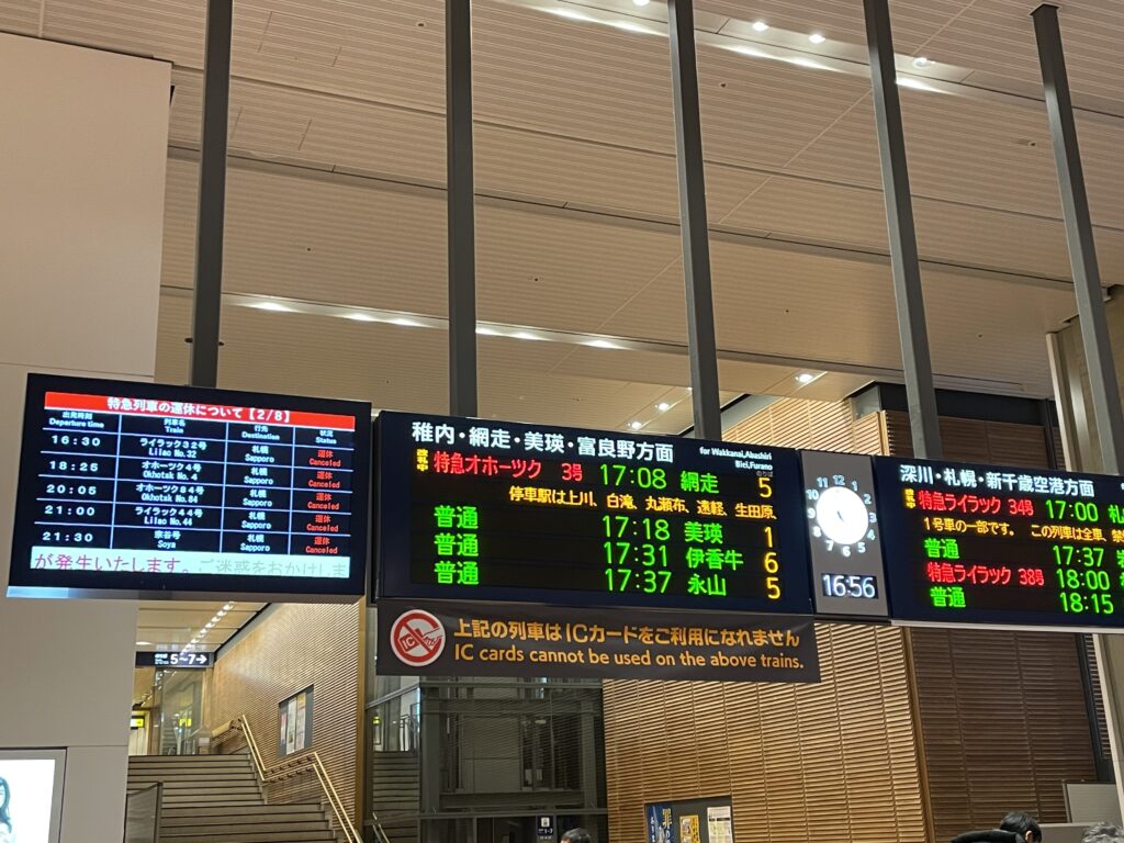 事前にチェックしたJR北海道のホームページによると、乗車予定の特急オホーツクは札幌−旭川間が部分運休とのことでしたが、