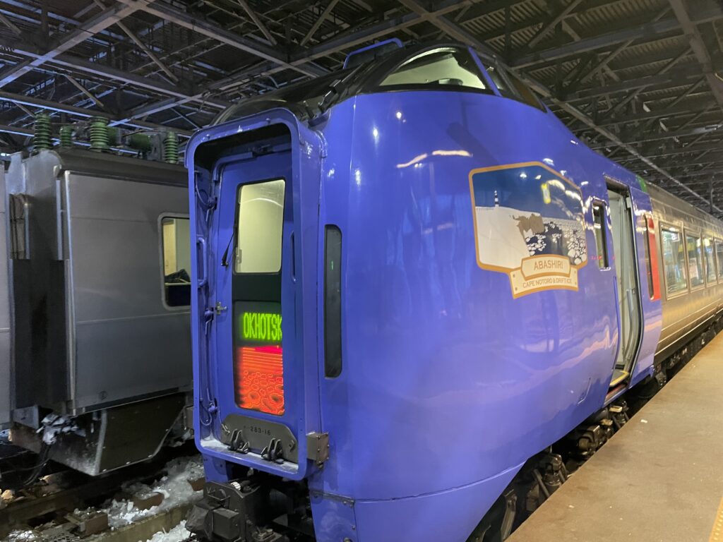 「定刻より5分遅れの到着です」とのことでしたが、冬の特急オホーツクではむしろ定刻より早く着いたぐらいの感覚です。